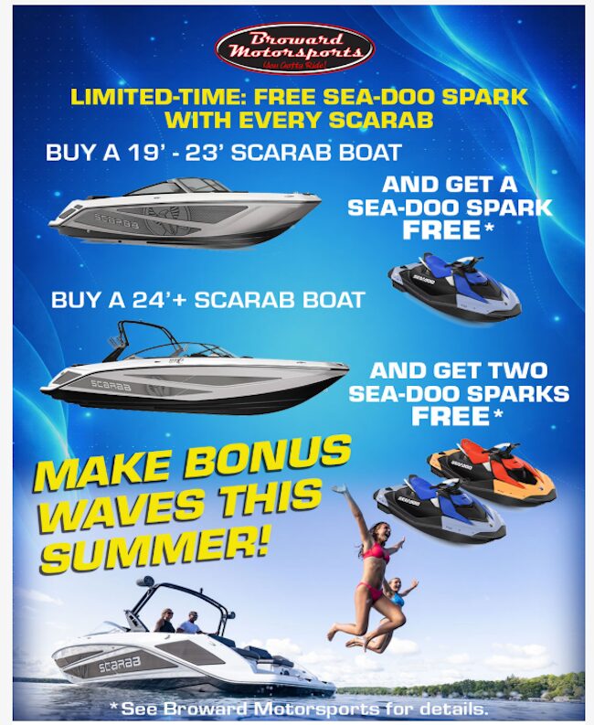 Broward Motorsports is turning up the heat in South Florida with a limited-time Scarab promotion that effectively doubles the fun on the water.