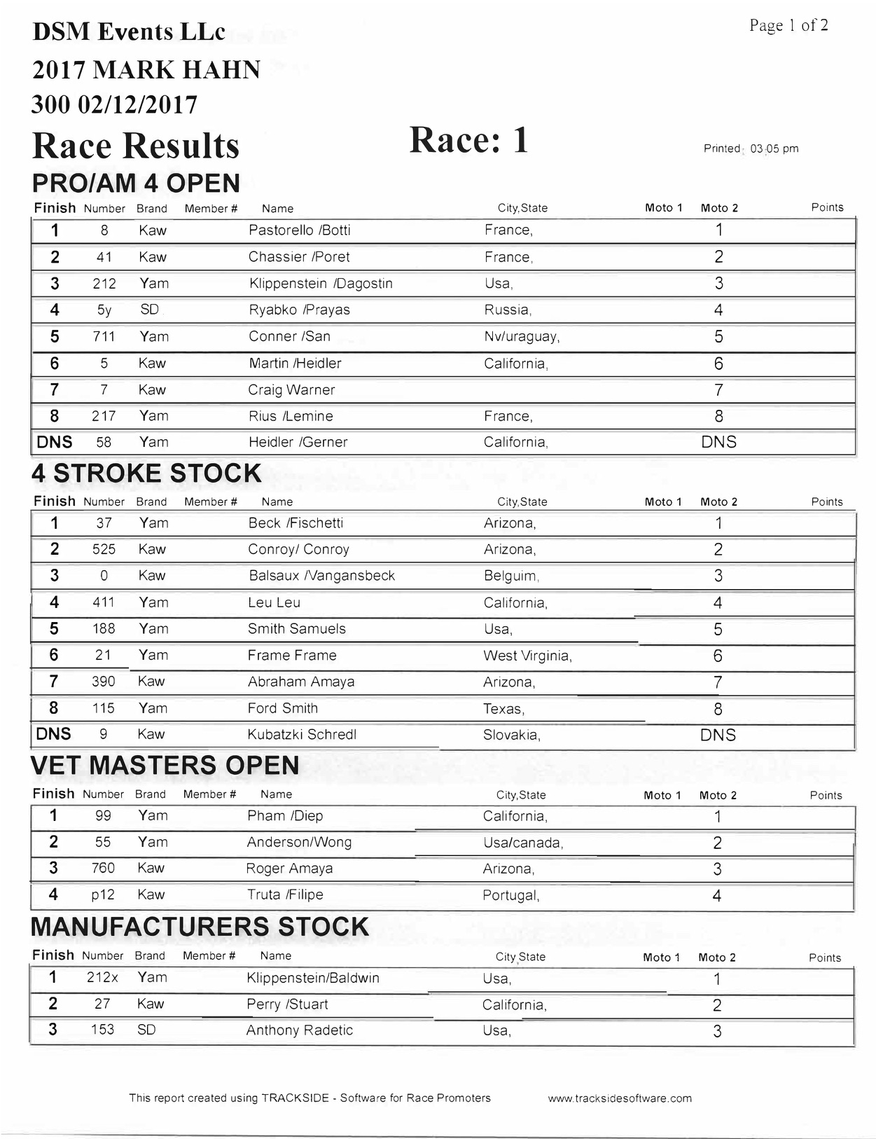 2017 MH300 results mfg number 2