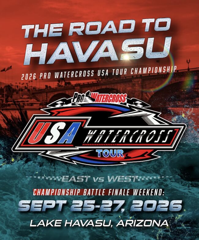 At the center of the partnership is the 2026 Pro Watercross National Tour, branded as The Road to Havasu. The tour is designed to prioritize affordability, accessibility, and visibility for privateer racers — a group repeatedly emphasized as the backbone of the sport. Pro Watercross officials say the tour’s format aims to reduce travel burdens by aligning national rounds with regional events, allowing racers to compete for both regional recognition and national points during a single weekend, without increased entry fees.