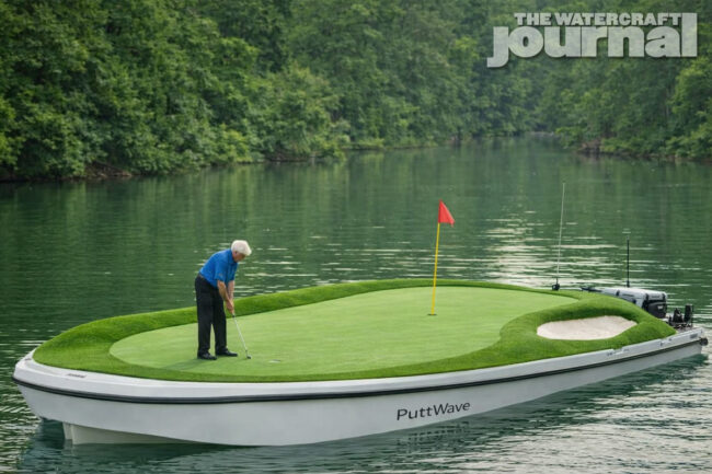 Backed by a 155mm pump, the PuttWave can reach a peak top speed of 8.3 miles per hour. Not bad, considering the deck’s 777-square feet of soil weighing 1,948-pounds and the 1,100 hull together puts the craft at 1.5 tons.