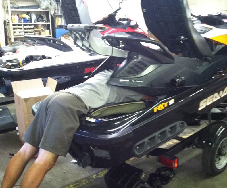 Now with the advent of the new Kawasaki SX-R 4-stroke standup (with the official release scheduled for the World Finals this upcoming October) there’s been a massive resurgence of interest in standups whether for recreation or racing. And as Sea-Doo has absolutely zero interest in building a standup (when Spark sales have singularly accounted for 30-percent growth in new product sales), the only way we’ll see a Sea-Doo powered standup is through aftermarket manufacturers like Sea-Doo Centre.