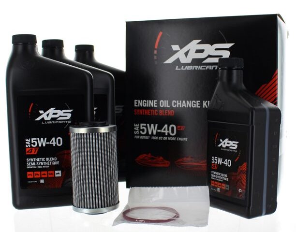 Two XPS 4T 5W-40 Synthetic Blend Oil Change Kits are on offer. One of them is for the ROTAX 1500 CC or more engine and the other is for the ROTAX 900 ACE engine. Both include oil, filter, O-rings, and washer. They have everything you need to save time and money. Sea-Doo XPS 4T 5W-40 Synthetic Jet Pump Oil and regular XPS Jet Pump Oil are available as well.