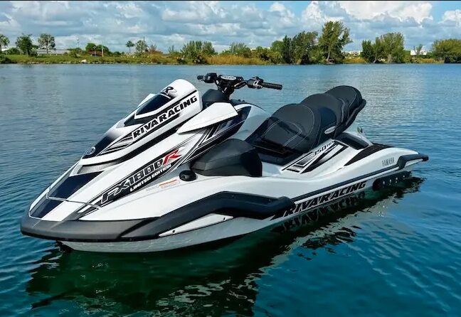 The white and black RIVA Yamaha FX1800R Limited Edition was developed for enthusiasts who demand the ultimate in power and performance. The limited edition unit features a host of RIVA Performance Products perfectly matched to the Yamaha FX Cruiser SVHO platform. This custom unit features exclusive hull graphics and color matched anodized RIVA Racing components. The engine produces a reliable 350 horsepower that delivers incredible acceleration and top speeds up to 81 mph.