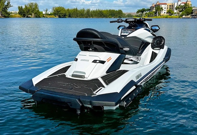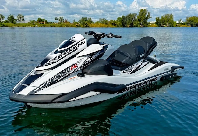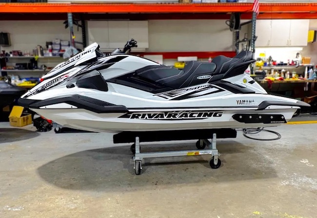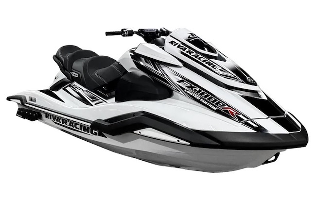The white and black RIVA Yamaha FX1800R Limited Edition was developed for enthusiasts who demand the ultimate in power and performance. The limited edition unit features a host of RIVA Performance Products perfectly matched to the Yamaha FX Cruiser SVHO platform. This custom unit features exclusive hull graphics and color matched anodized RIVA Racing components. The engine produces a reliable 350 horsepower that delivers incredible acceleration and top speeds up to 81 mph.