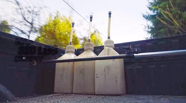 In one clip shared online, the bar is positioned across a truck bed to secure a row of tall race fuel containers — the same style most PWC riders rely on for long days at the lake or race site. Instead of relying on straps or hoping they stay upright, the cargo bar locks them in place, keeping everything exactly where you left it.